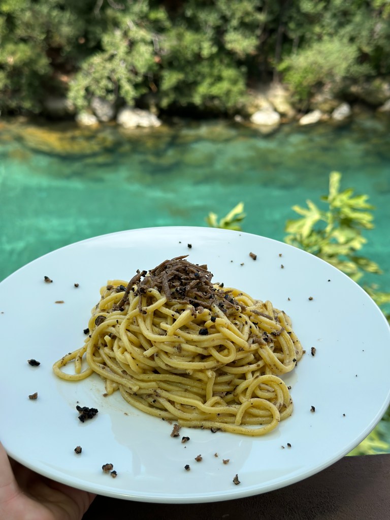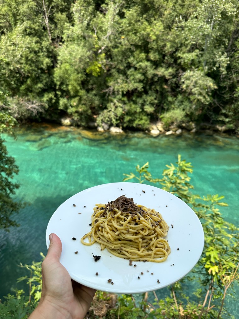 Uno dei miei posti preferiti in estate, scoperto per caso, è questo bar trattoria molto semplice che serve cucina genuina in un ambiente di casa con il fiume Nera di fronte. La cosa più bella è che prima o dopo aver mangiato si può fare il bagno in queste acque limpide e gelate (la temperatura dell’acqua è di circa 10 gradi)