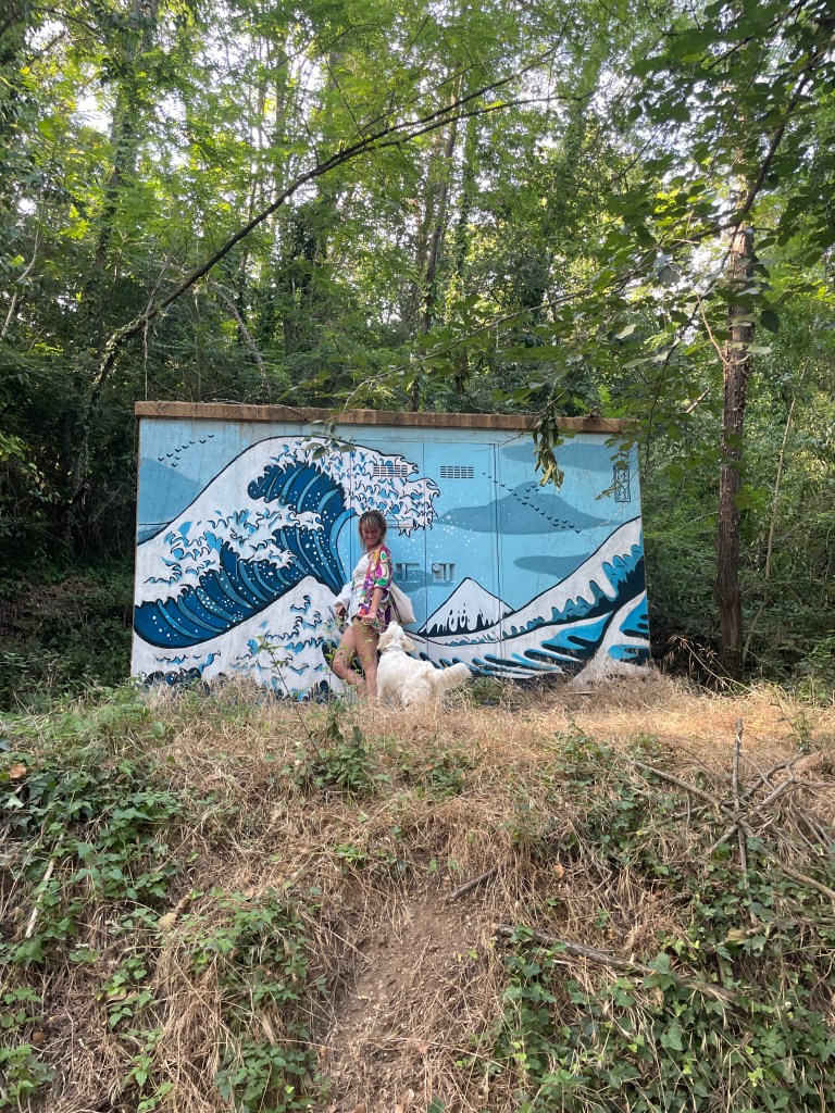 Scendendo per fare il bagno sul fiume, invece, ho trovato alcuni pezzi di street art che ho molto apprezzato. Purtroppo non ne conosco gli autori. Nel fiume si possono vedere tante farfalline, libellule e altri insetti molto belli da osservare mentre volteggiano per i rami sfiorando l’acqua del fiume